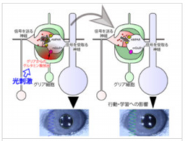 さらに研究グループは、グリア細胞を刺激した時の運動学習への影響も調べた。眼の前で動くものを眼で追うという精密な運動学習は、最初はうまくできないが、長い間の訓練によってだんだんうまくできるようになる。小脳の働きによるものであり、現時点で考えられているその仕組みは、小脳のシナプスでの信号の伝わりが弱くなることで、よりよく追うことができるようになるというものだ。