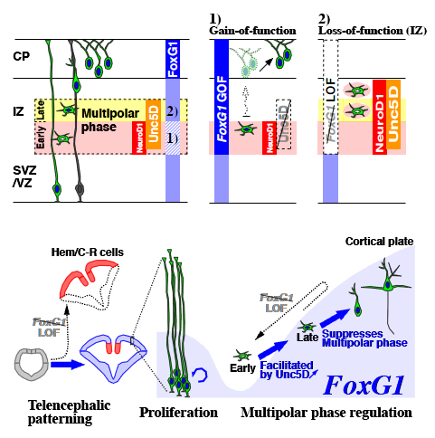 このように多極形態の前期におけるFoxG1遺伝子の減少は、皮質細胞の位置決定、さらには神経細胞の機能獲得に重要な役割を果たす。その一方で、多極形態後期におけるFoxG1遺伝子の増大にも非常に大きな役割があることを明らかにした。