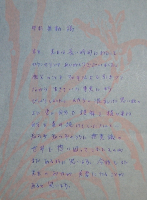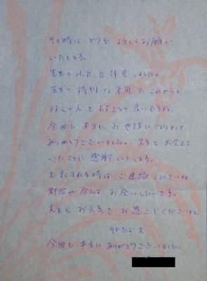 現在、映画・テレビ・ラジオで活躍されている、ある女優さんから、2008年5月1日に届いた感謝の手紙です。