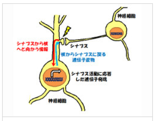 シナプス活動によって引き起こされた新規遺伝子の発現により、タンパク質「Arc」が合成されることはすでに知られていたが、今回の研究では、Arcが細胞体からシナプスへ至る動態を世界で初めて解析された。