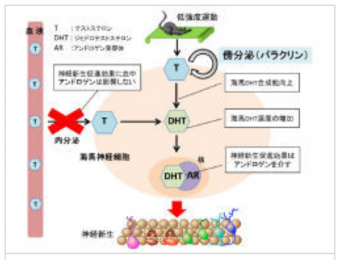 そこで研究グループは、アンドロゲンを投与するとBDNFやVEGFなどの発現が高まることに着目し、アンドロゲンが神経新生の促進機構において重要な役割を担っていると考えたのである。
