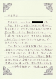 今回、本当にお世話になりました。電話では報告しましたが、どうしても改めてお礼のお手紙を書こうと思っていました。新生活でバタバタしていて、少し遅くなってしまいましたが、井手先生と出会わなければどうなっていたんだろうという気持ちを、ずっと伝えようと思っていました。