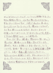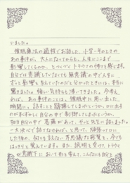 また何かあれば、お手紙を書かせてもらおうと思っています。これからも、頑張ります。