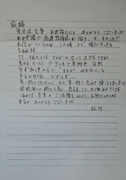 車から降り、スタッフの人たちに挨拶をするやいなや、息子さんが、私のところに歩み寄り、
