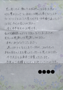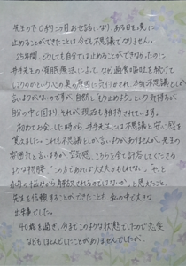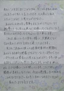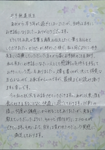 私の回顧録のような手紙となってしまいましたが、先生には感謝しても感謝しきれません。